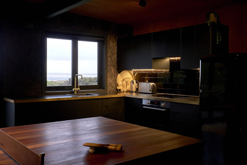 a table-tennis table of reclaimed timber takes the place of a kitchen island and dining table