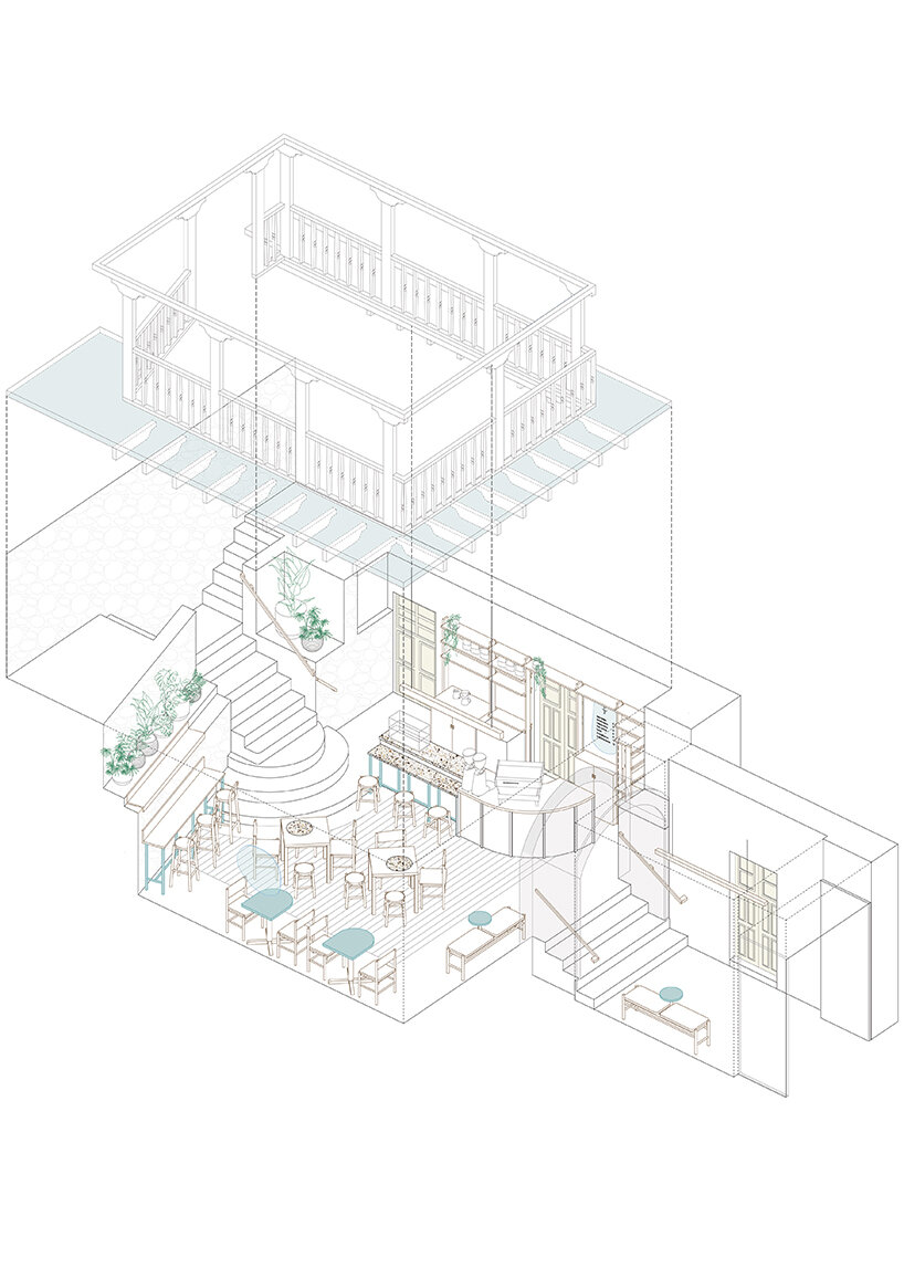 the inner patio houses the main area of the cafeteria