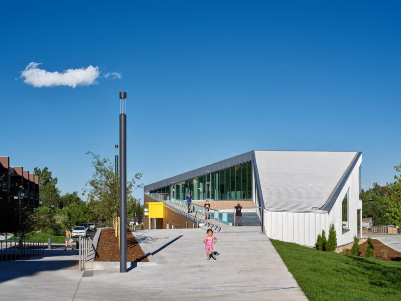 a ramp provides accessible entry to second-floor spaces, allowing public use even when the library is closed