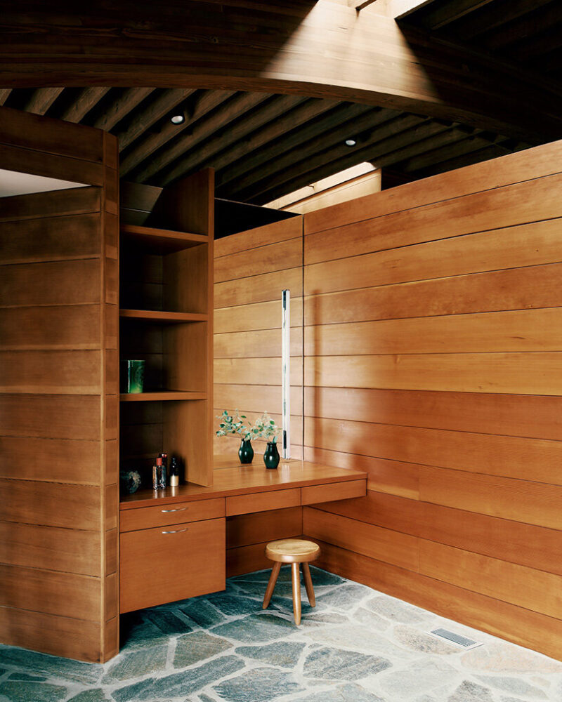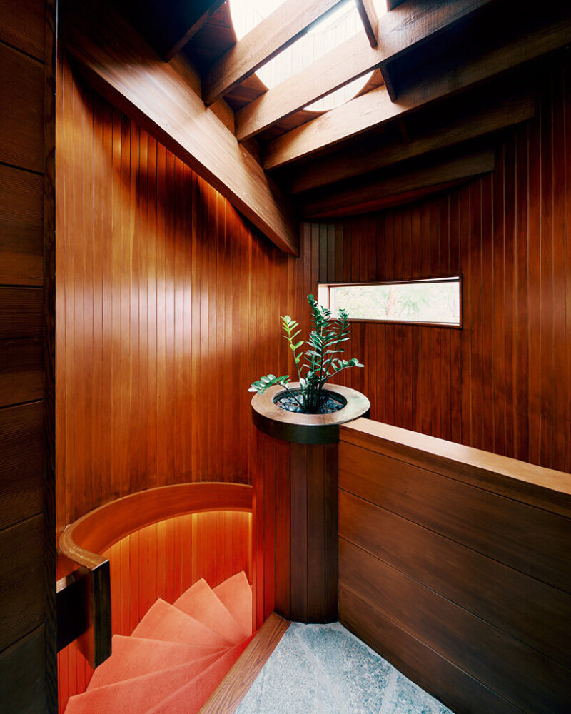 copper beam caps replace painted metal and will weather alongside stone and timber
