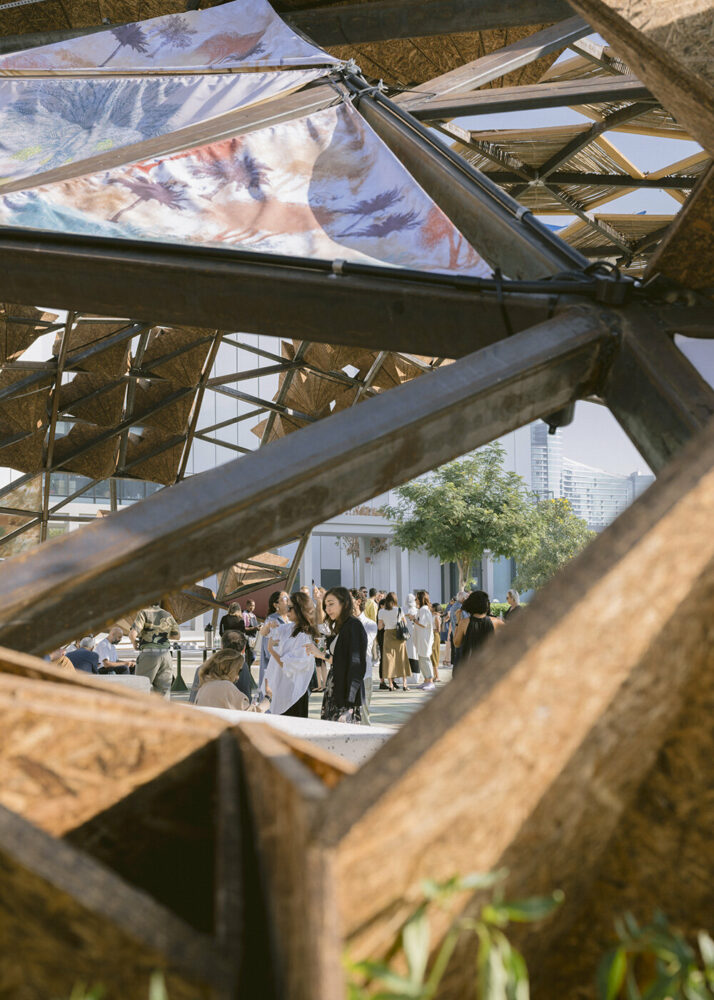 Tarabot is our first project that meaningfully bridges our work of building habitats for humans with building habitats for other organisms. […] Tarabot – which means ‘to weave together’, offers a shared space for humans and other organisms to come together as interdependent equals, sharing food, water and habitat,’ the architect shares. Building on his words, the design incorporates four pillars that speak to its concept, construction and de-installation: Soil, Water, Plants, and Energy. After de-installation, the modular constituents of Tarabot: Weaving a Living Forum will be repurposed for domestic planting on land with the structure taking on new life as underwater habitat for coral and fish, linking life on land to life underwater. Also featured within the Tarabot Pavilion during COP28 is a series of artworks created by Dubai-based, multidisciplinary artist Solimar Miller in response to the impact of urbanisation on the environment.