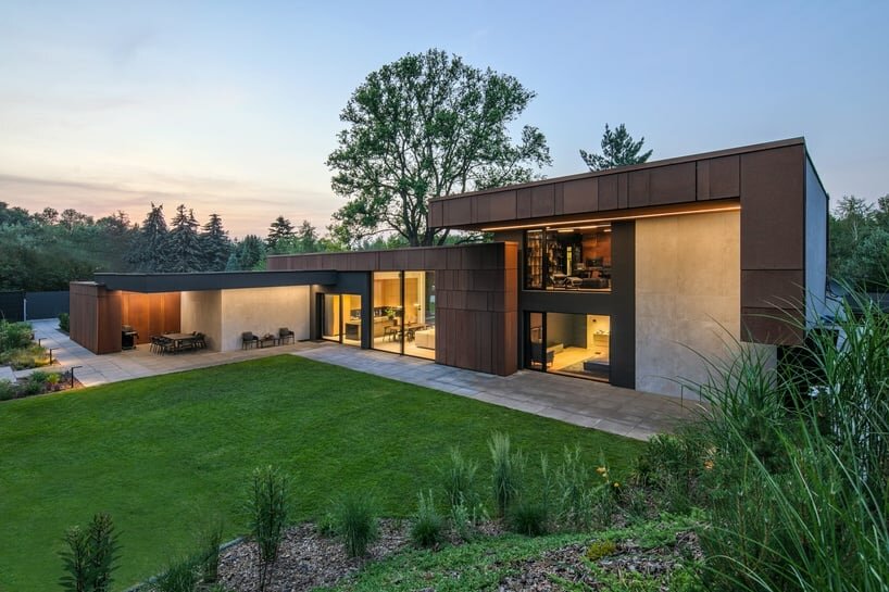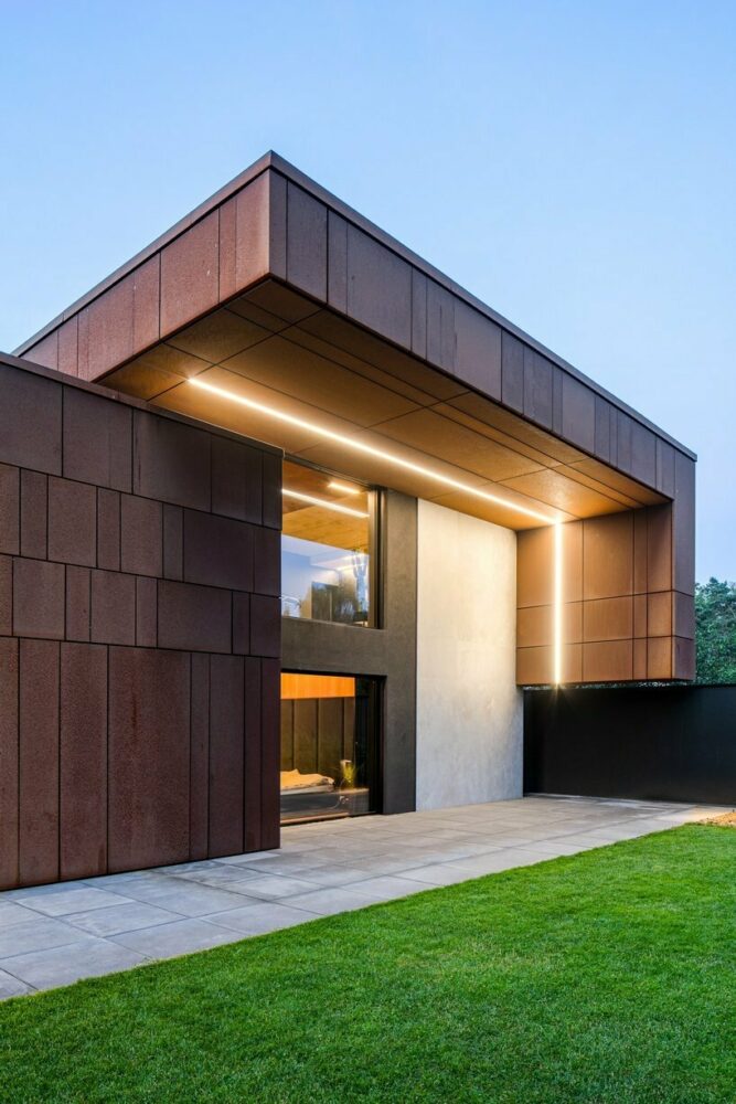 corten steel clads vero casa's intertwined volumes in poland