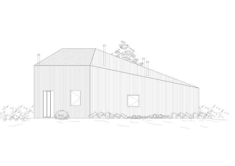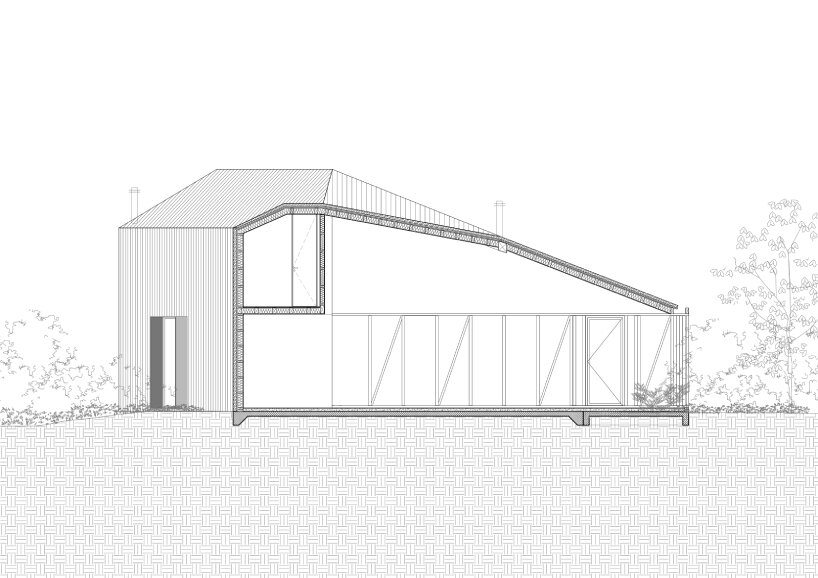 Compliant with seismic regulations, the Buenos Aires-based studio has completed the structure with a reinforced concrete slab foundation supporting a lightweight framed structure constructed with pine wood. The exterior is sheathed in 5mm pre-painted black corrugated steel sheets with a zincalum base, while white-painted eucalyptus planks inject lightness across the interiors, from the flooring to the vertical surfaces.