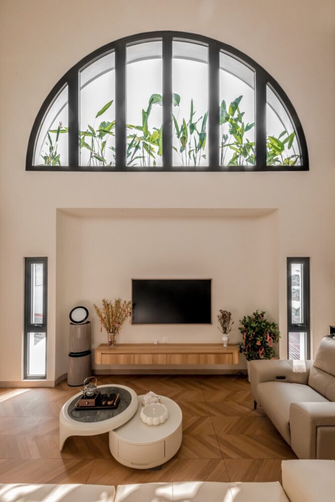 a green system is integrated, functioning as a tranquil visual relief and a microclimatic buffer