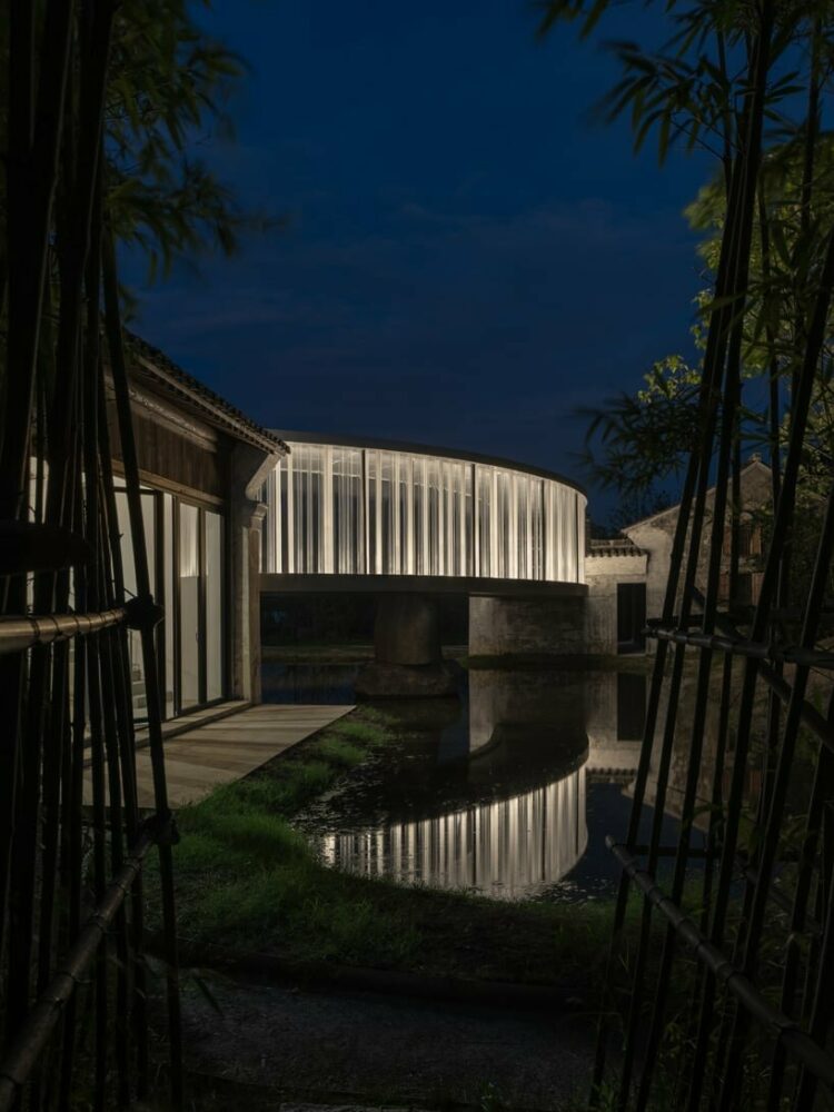 the single-sided cantilever design of the bridge-corridor maximizes lake views