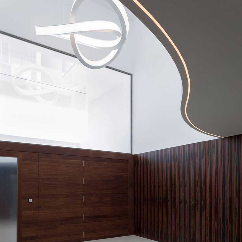 Material and Linear Lighting Emphasize the Home’s Curvature