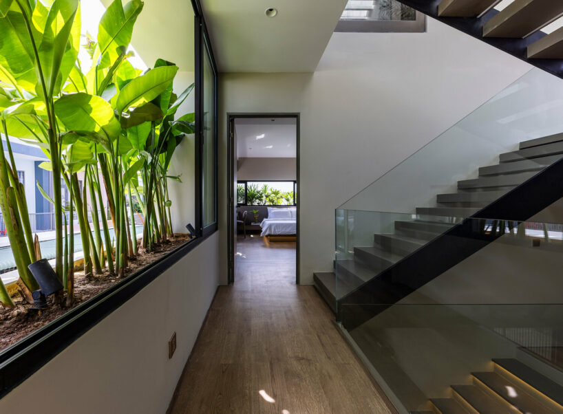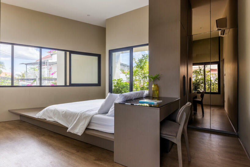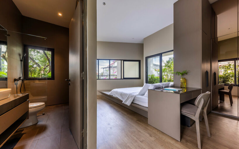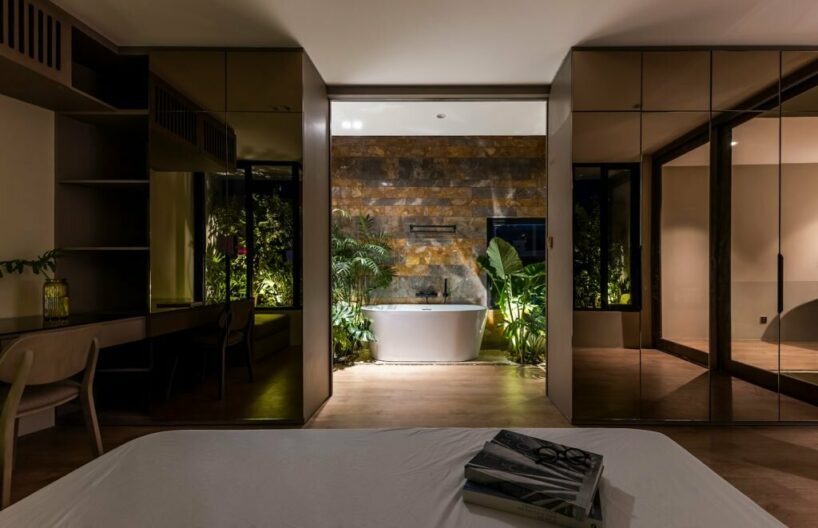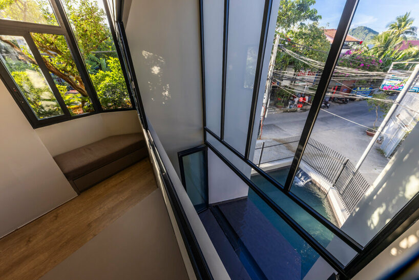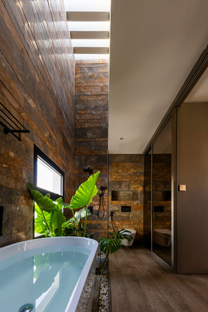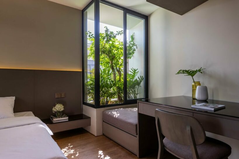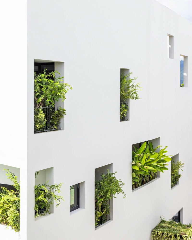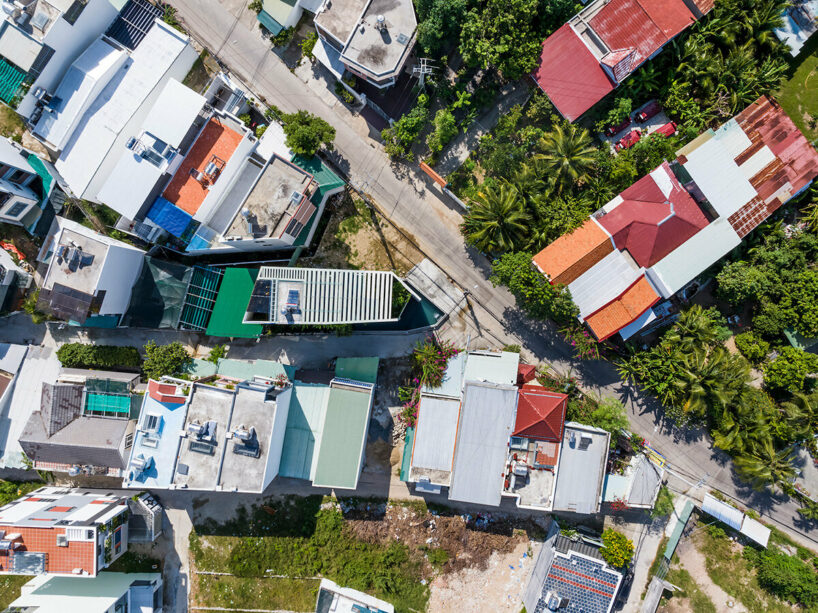the project sits like a ring placed over the terrain, with its funnel-like roof forming a shaded perimeter walkway and an introverted core.