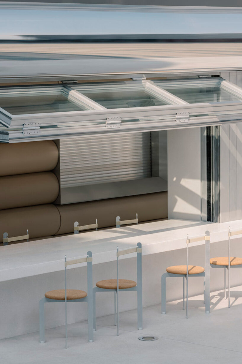 the wide facade features a corridor for grab-and-go orders and double-sided window seats
