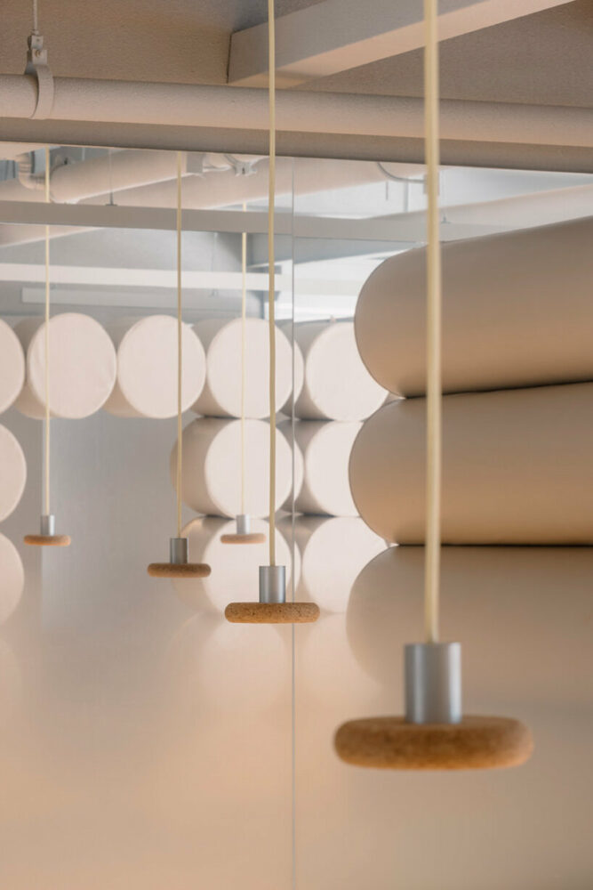 the project sits like a ring placed over the terrain, with its funnel-like roof forming a shaded perimeter walkway and an introverted core.