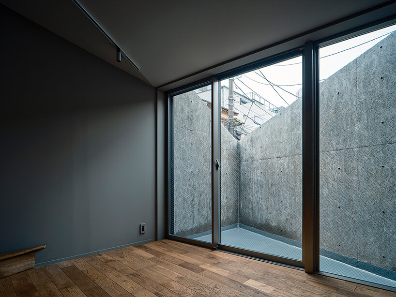 slanted lines and staggered floors create alternative spaces inside tokyo's diagonal house