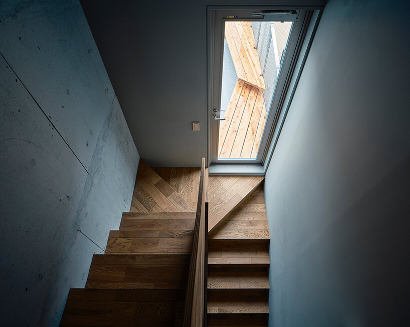 As such, the countless diagonal lines, resulting from careful examinations of the level of visibility and the relationships between the spaces, became a signature feature encouraging connectivity to the exterior. ‘We strived to create a home that sits harmoniously among the varied forms of surrounding residential buildings and a microenvironment in which the family can feel a sense of urban life wherever they are inside the house,’ concludes id+fr studio.