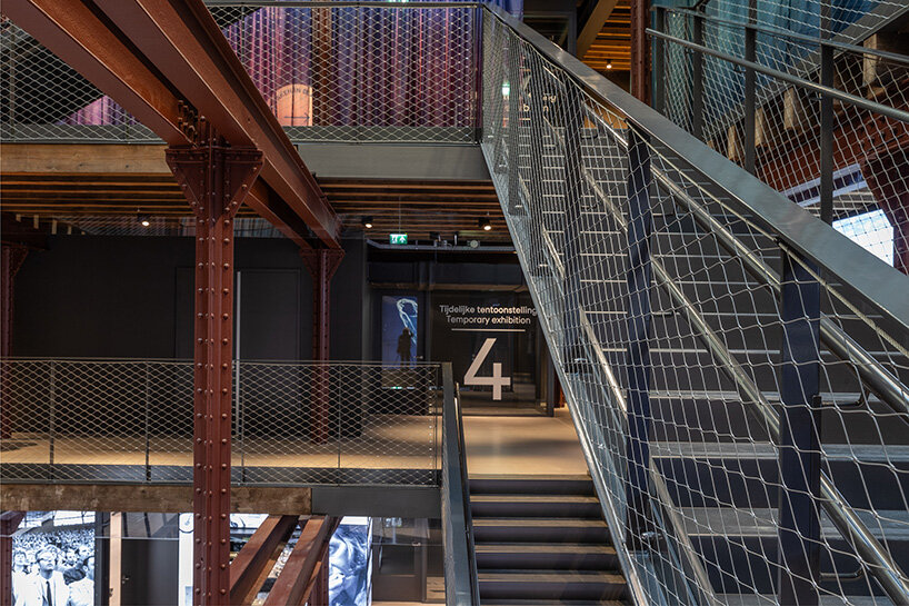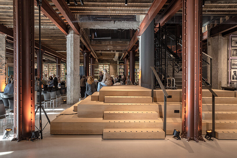 Photographer Danica O. Kus documents the recently opened Nederlands Fotomuseum in Rotterdam’s Rijnhaven district, now occupying a nine-story, early 20th-century coffee warehouse, originally built between 1901 and 1902 to store beans arriving from the Brazilian port city of Santos (find designboom’s previous coverage here). Her images dwell on the tension between weight and lightness, capturing thick masonry walls and ornamental facades counterbalanced by exhibition spaces. The robust structure of the former warehouse is not erased but reframed, allowing photography to unfold within a calm environment. Climate-regulated galleries, cold storage facilities, and newly visible conservation areas signal the technical upgrade of the building, yet Kus’ lens keeps attention on how visitors encounter the work.