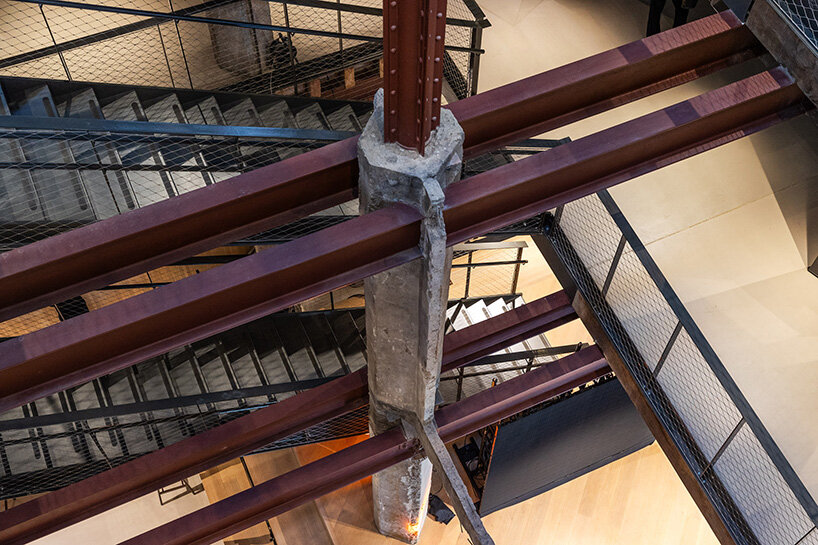 cascading staircases and steel walkways reveal the building’s layered interior
