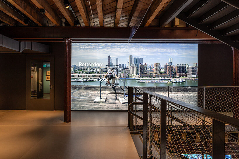the rooftop ‘crown’ offers panoramic views over rotterdam’s rijnhaven district