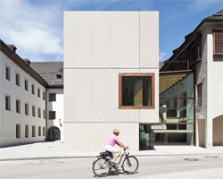 the project sits like a ring placed over the terrain, with its funnel-like roof forming a shaded perimeter walkway and an introverted core.