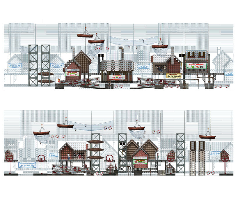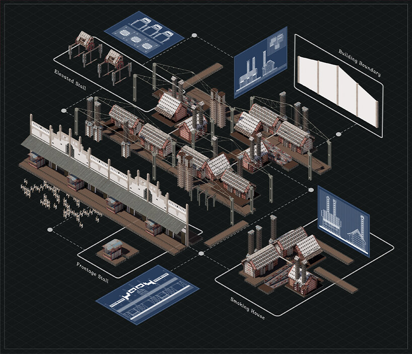 ‘The Smoked County Relish’ is a thesis project by Daniel Jansen Harianto, developed as part of his bachelor’s degree in Architecture. For this proposal, he envisions transforming Indonesia’s abandoned coastal civilization into a resilient hub through the adaptive reuse of leftover materials and the introduction of collaborative, easy-to-access technologies. Specifically, Harianto’s thesis spotlights the city of Semarang in the north of Java Island, famous for preserving the age-old tradition of smoked-fish culture.
