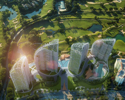 in collaboration with designer daniel libeskind, the development will be implemented by local architect garcia stromberg and landscape architecture office EDSA. on average, the condominium unit size will be 2,500 square-feet, while each will feature expansive views to the ocean and be accessed by private elevators. the proposed scheme envisions vegetation not only across the site’s landscape, but also on the residence’s balconies as well as the high rise roof tops. the glass towers will exist as some of the tallest structures in the area, comprised of low to mid-rise buildings.