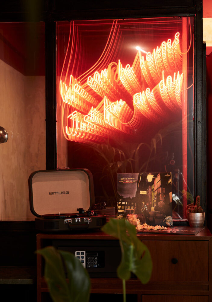the mezzanine features a bar, pool tables, original nintendo and packman consoles, and an arcade machine