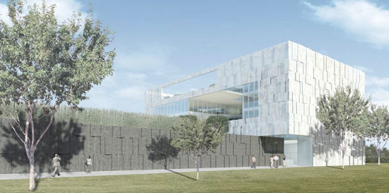 david adjaye was commisioned by patrizia moroso to design the new moroso headquarters. the project site lies on the northern outskirts of udine along the arterial via nazionale route on the site of the office and production facilities of the renowned furniture brand. the new office headquarters are to be located in close proximity to the current production building, respecting the 20m setback from the main road as stipulated by local guidelines and – if at all possible – safeguarding the row of existing handsome trees.