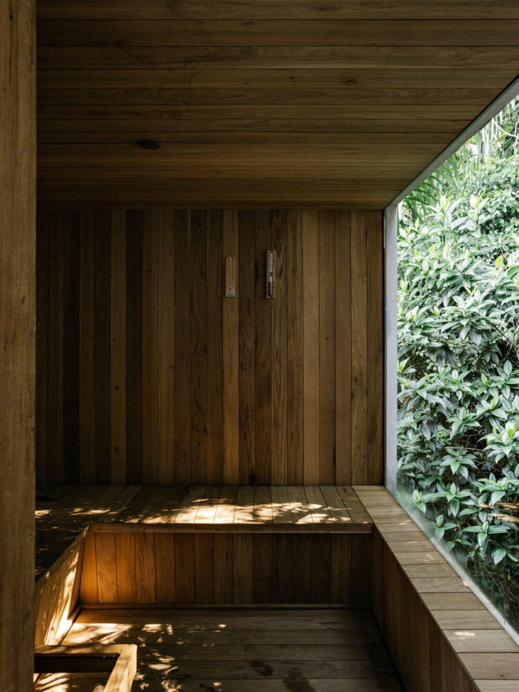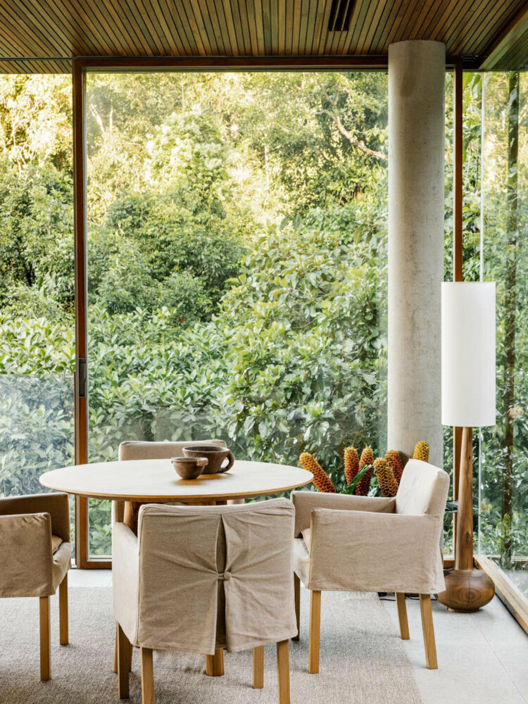 the project sits like a ring placed over the terrain, with its funnel-like roof forming a shaded perimeter walkway and an introverted core.