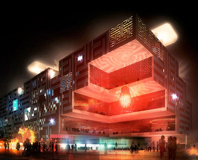 a continuation of the existing rock formations, the hotel is articulated as a series of stepped horizontal planes, courtyards, and gardens.