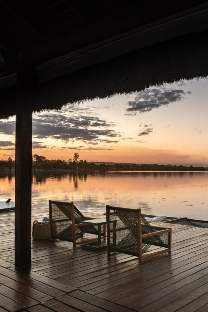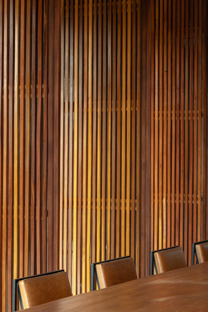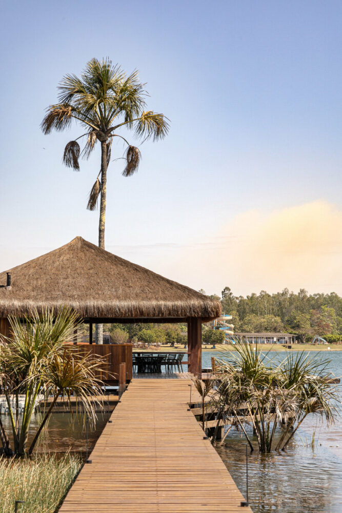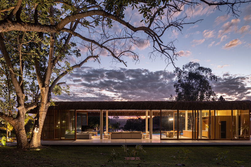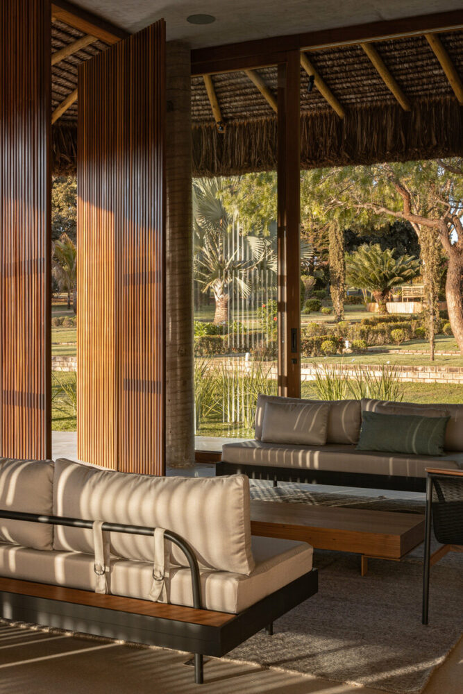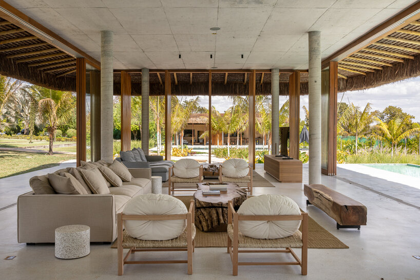 the project sits like a ring placed over the terrain, with its funnel-like roof forming a shaded perimeter walkway and an introverted core.