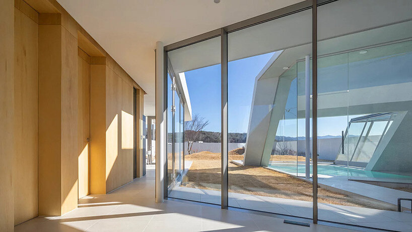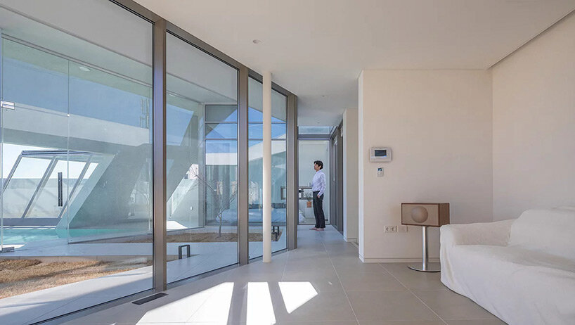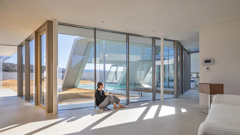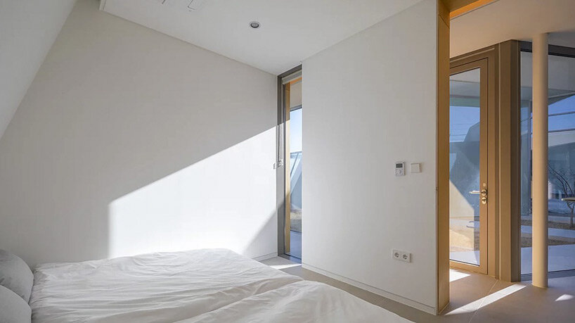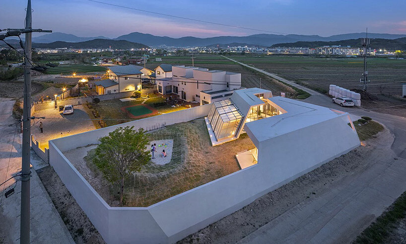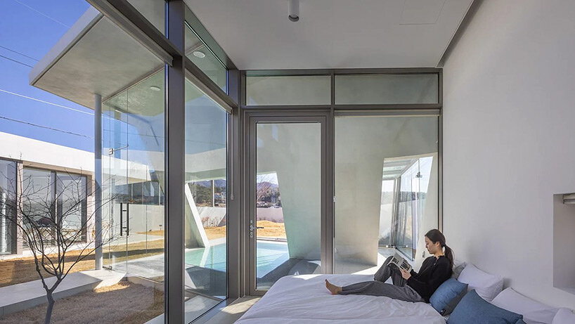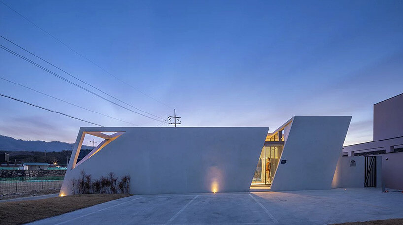 diagonal walls and spacious courtyards shape playful pension by rieuldorang atelier in korea