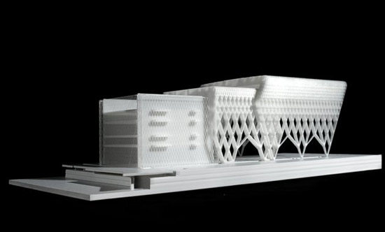 a continuation of the existing rock formations, the hotel is articulated as a series of stepped horizontal planes, courtyards, and gardens.