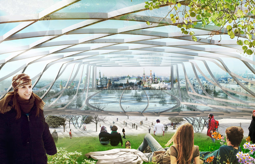 reflecting the city’s desire to become more pedestrian oriented, the park is pathless, allowing its occupants to move fluidly and without restriction. an energy harvesting system which creates augmented micro-climates will enable the site to function as a public space throughout russia’s cold winters. ‘zaryadye park’ is scheduled to be completed by 2016.
