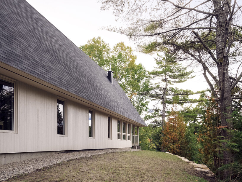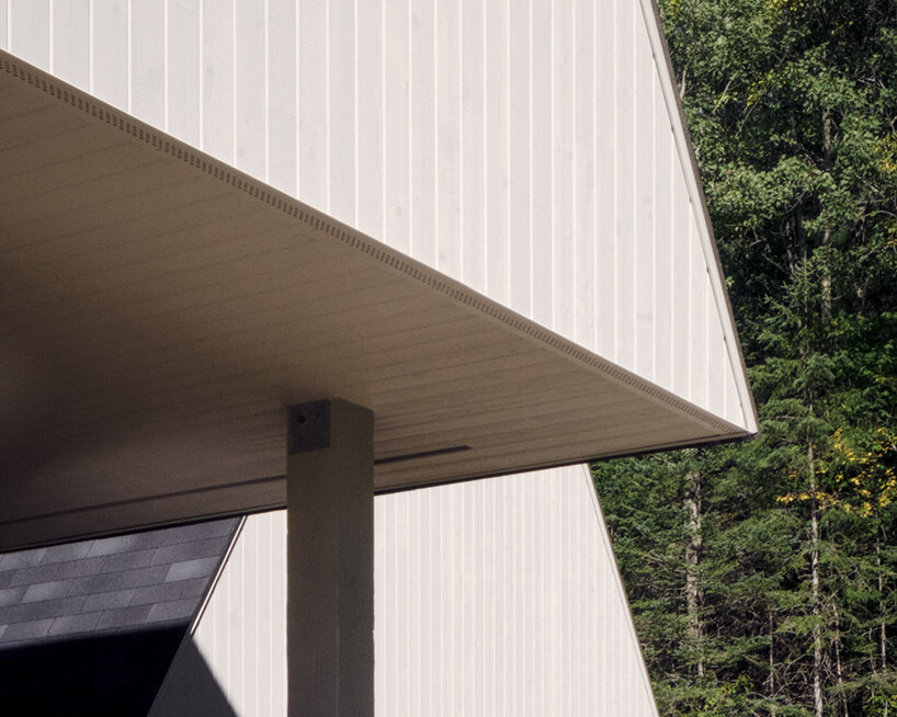 the project sits like a ring placed over the terrain, with its funnel-like roof forming a shaded perimeter walkway and an introverted core.