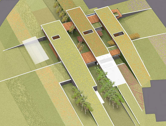 a continuation of the existing rock formations, the hotel is articulated as a series of stepped horizontal planes, courtyards, and gardens.