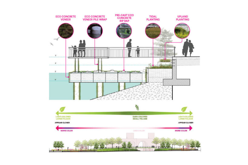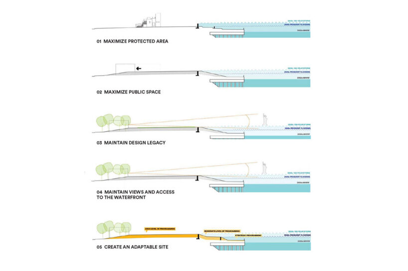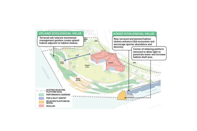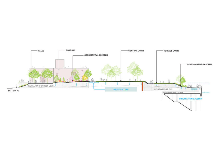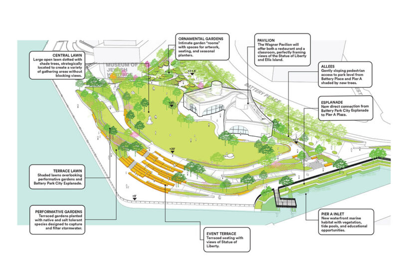 the landscape balances wide views of New York Harbor with everyday footpaths and gardens