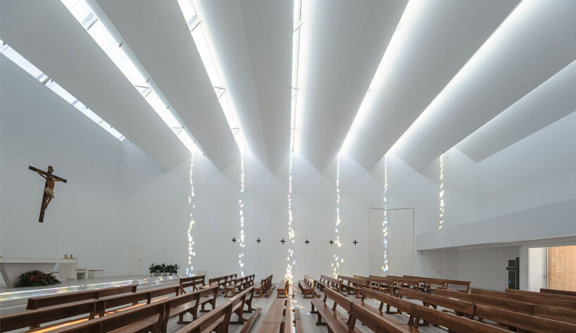 elisa valero's jagged roof diffuses intricate pastel patterns inside the church