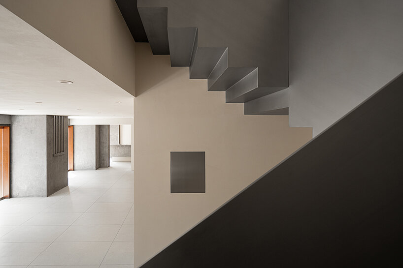 the project sits like a ring placed over the terrain, with its funnel-like roof forming a shaded perimeter walkway and an introverted core.