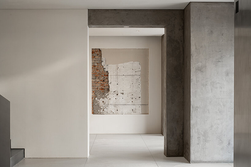 restored plaster walls replicate a concrete effect