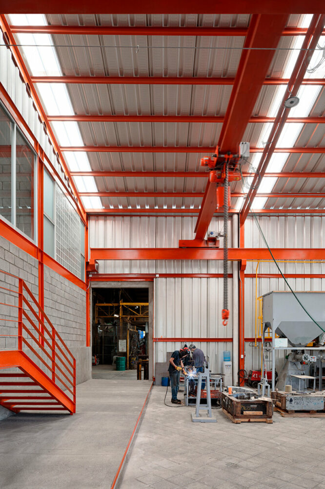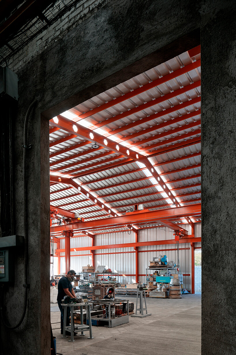 Architect Emilio Alvarez Abouchard has completed the ‘FM Warehouse’ in Morelia, Mexico, as a naturally-lit industrial facility with bright orange coating. The structure sits adjacent to an existing steel foundry meant to grow in space, and can be accessed from the site’s north and south streets.