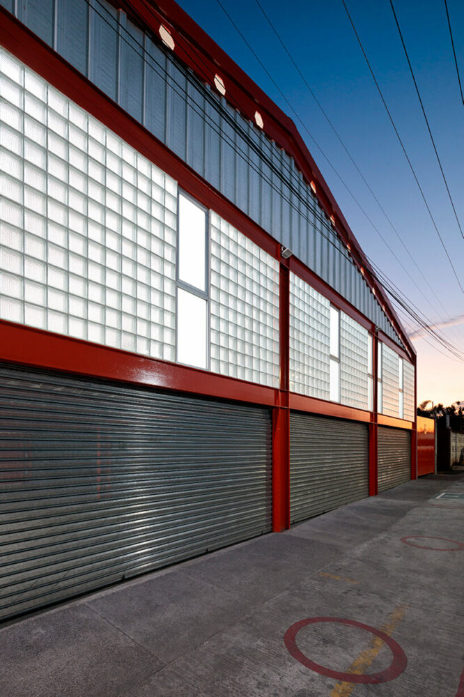 Alvarez Abouchard (see more here) divided the first section into two levels using a corrugated steel floor decking; it holds a parking lot on the first floor and offices on the second. The next section is a double-height space dedicated to working and storage; if needed, this 6-meter-long area can expand further to the south side.