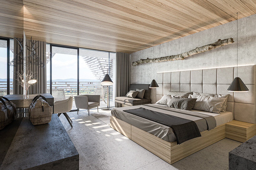 a continuation of the existing rock formations, the hotel is articulated as a series of stepped horizontal planes, courtyards, and gardens.