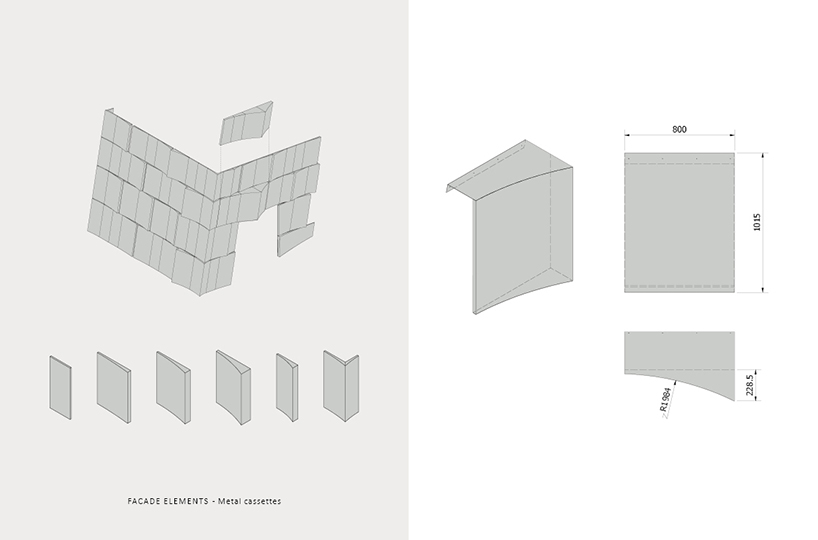 custom metal cassettes by Erdegard Arkitekter shimmer through a hydro-dip treatment
