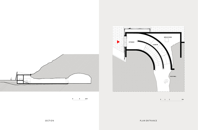 erdegard arkitekter carves 'mountain chamber' threshold to rock cavern in sweden