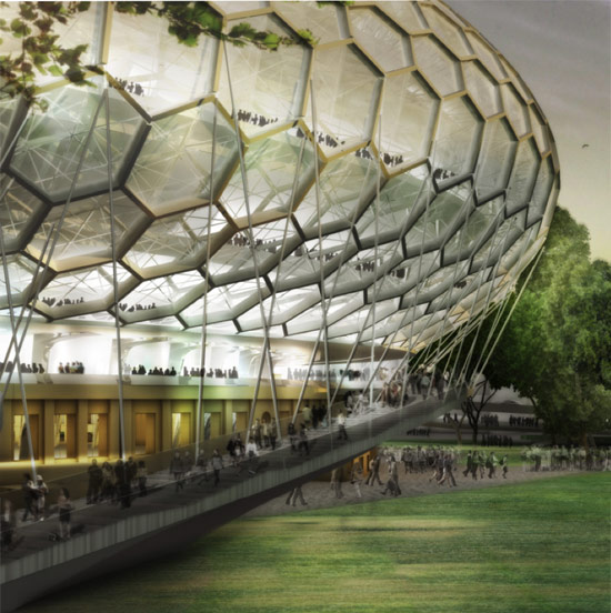 a continuation of the existing rock formations, the hotel is articulated as a series of stepped horizontal planes, courtyards, and gardens.