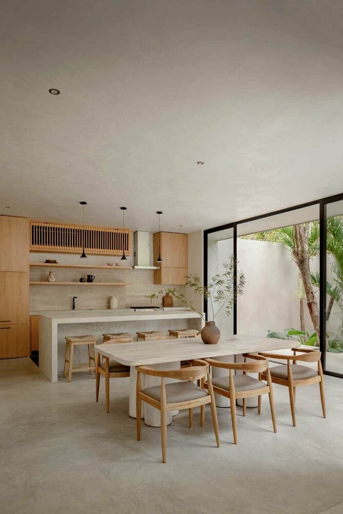 Villa Cava was conceived to deliver unique multi-sensory experiences to its inhabitants, ‘bringing them together in a space that offers rest, inspiration, and personal growth.’ The design takes its cues from Cenotes —  natural caves formed by collapsing limestone bedrock, exposing groundwater. This is represented in a glass-bottom pool on the rooftop, letting natural lighting into the spaces facing the generous aperture.