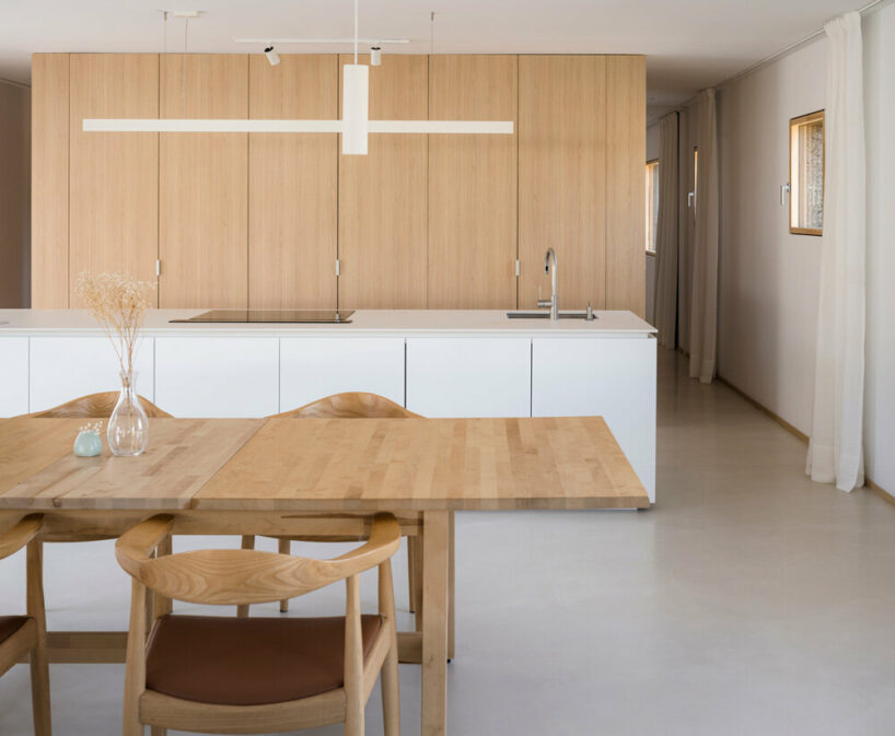 the house emphasizes passive design and energy efficiency, utilizing a lightweight wooden framework for the structural envelope