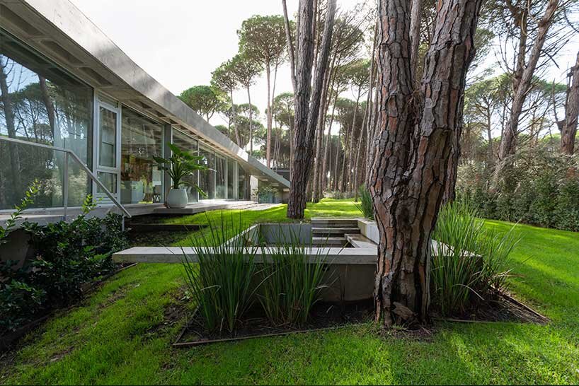 nestled in an ‘urbanized’ forest in the south of pinamar, argentina, ‘jaima house‘ takes shape as the fourth dwelling of the concrete houses series designed by estudio galera. the residence is arranged around patios designed for different purposes and varying levels of privacy. the project employs a flexible open layout where most areas, except specific rooms such as bathrooms and kitchen, propose but not impose uses.‘the spaces must be flexible and accommodate the new generations, who do not longer watch television or study in a specific room,’ said the architects.estudio galera builds concrete house in argentina by proposing but not imposing usesall images courtesy of diego medina