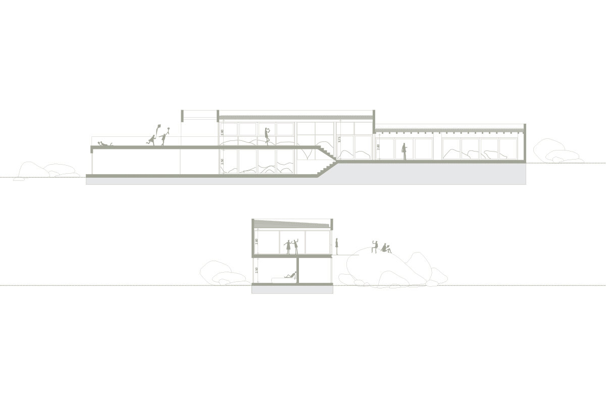 a continuation of the existing rock formations, the hotel is articulated as a series of stepped horizontal planes, courtyards, and gardens.