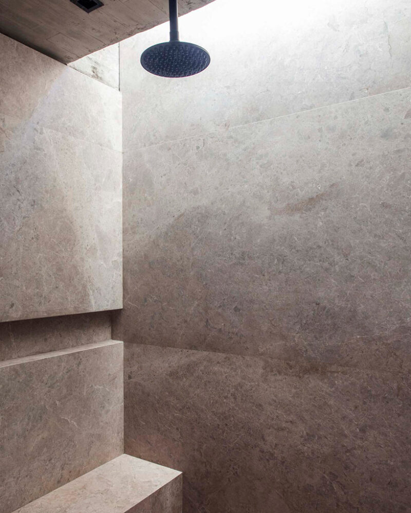 the team at estudio PKa comments on the process of designing its casa E: ‘both volumes were worked from different perforations that make up void fills, providing a void to the north with respect to the patio. the work was projected thinking of a more introverted relationship towards the street and opening towards the interior and nature.