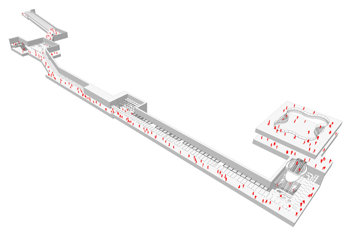 a continuation of the existing rock formations, the hotel is articulated as a series of stepped horizontal planes, courtyards, and gardens.