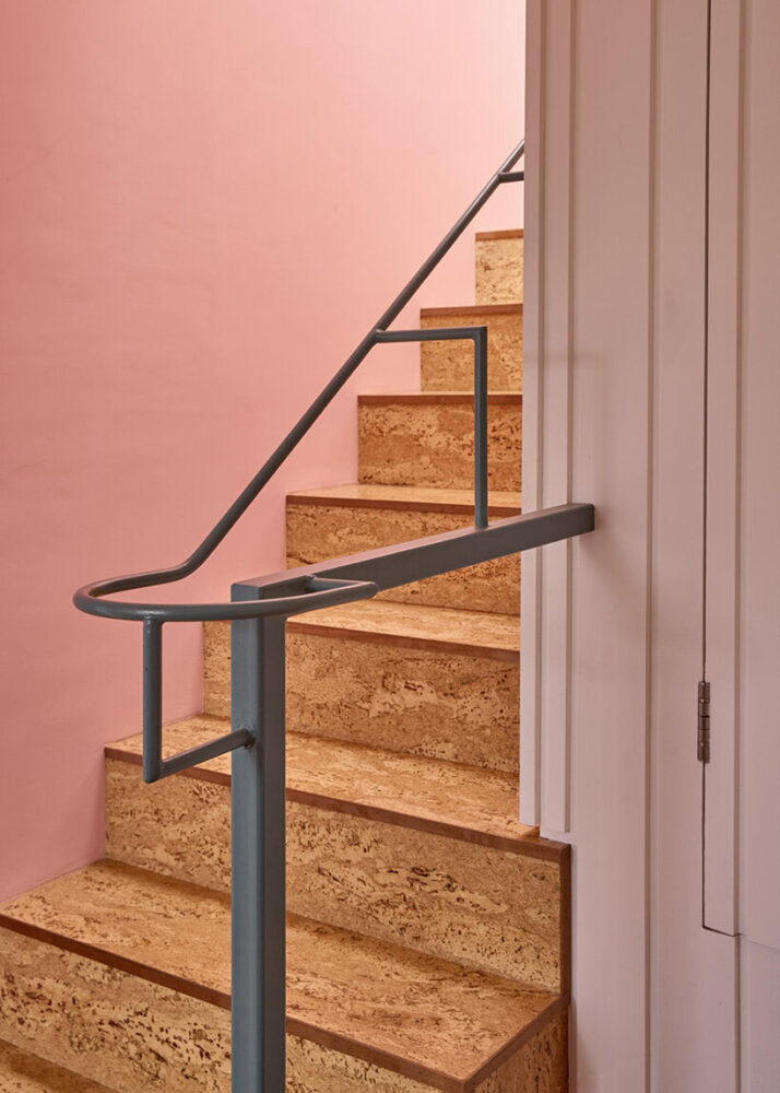 The Blue House accommodates three bedrooms, an office with its own kitchenette and street access, and a top-floor studio looking out toward London. The layout also supports a five-bedroom configuration, illustrating how the architecture sustains adjustment as domestic or work needs evolve. This flexibility reflects the intentions embedded in FAT Architecture’s original design, which approached the home as a setting for overlapping forms of living.
