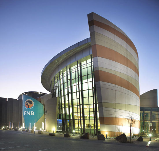 fairland offices in johannesburg, south africa has just opened. housing two major financial institutions the buildings design incorporates its surroundings by using natural colors of africa for its exterior and planting indigenous plants around the building, as the area was previously a wasteland. the three story structure consists of slanted concrete columns that support corner pod office units and a patterned ceiling resembling the form of floating lily pads. facilities included in the building are a clinic, two kitchens, security offices and a 600 seater conference centre. it is able to accommodate over 500 people.