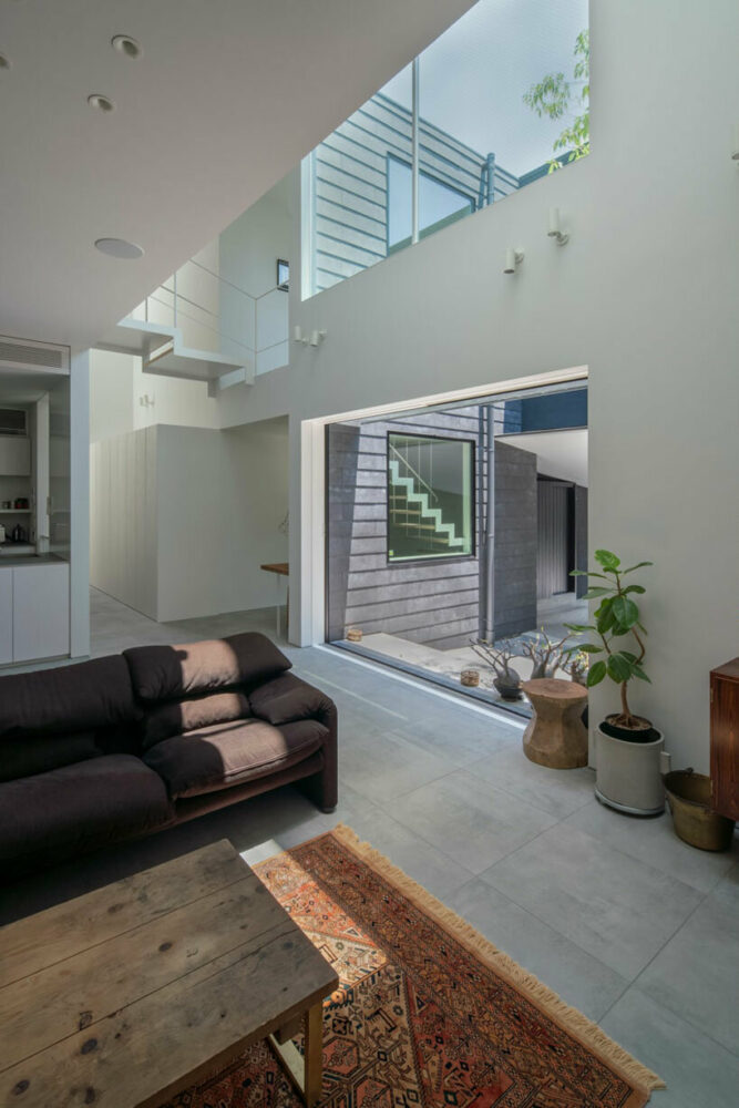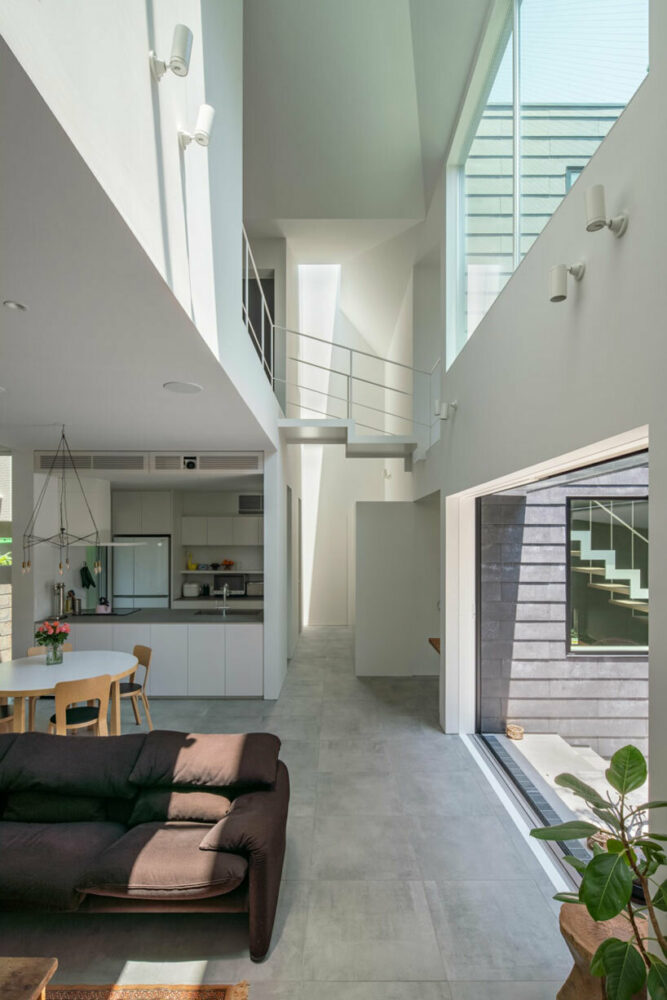 ‘We aimed to create a comfortable home where you can choose the area and distance of your family while taking in light, wind, and scenery,’ says the architect.